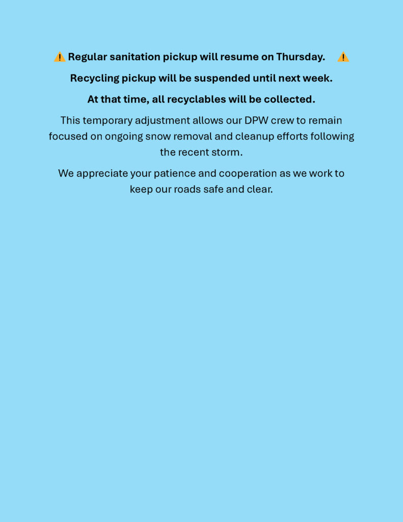 Public Works 85 Williamson Street East Rockaway, New York 11518-0189(516) 887-6316 Hours of Operation Mon-Fri | 8:00AM – 3:00PM Kevin P. Conklin | Superintendent Important Links Recycling Calendar